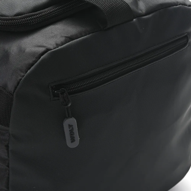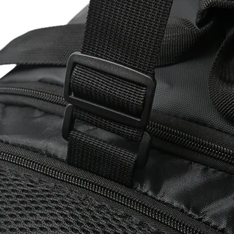 Con un diseño práctico y moderno, cuenta con un compartimento principal amplio, dos bolsillos laterales, un bolsillo frontal con red para acceso rápido y un compartimiento separado para zapatillas o ropa húmeda, ideal para mantener todo organizado y limpio.